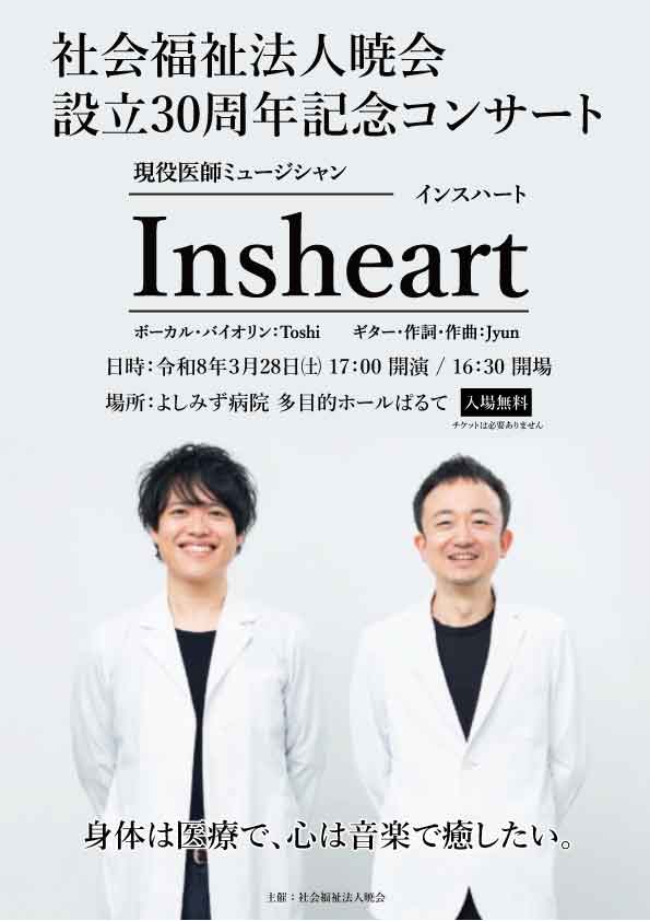 現役医師による音楽ユニットInsheartによる記念コンサートを開催いたします。
